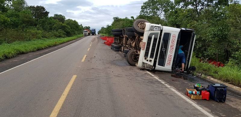 Um caminhoneiro ficou ferido após uma carreta carregada de cerveja tombar no início da manhã desta segunda-feira (10) na região sul do estado. O acidente aconteceu na BR-153, próximo de Aliança do Tocantins. A carga ficou espalhada pela rodovia e acostamento. A pista ficou interditada por alguns momentos, mas o trânsito já foi parcialmente liberado.