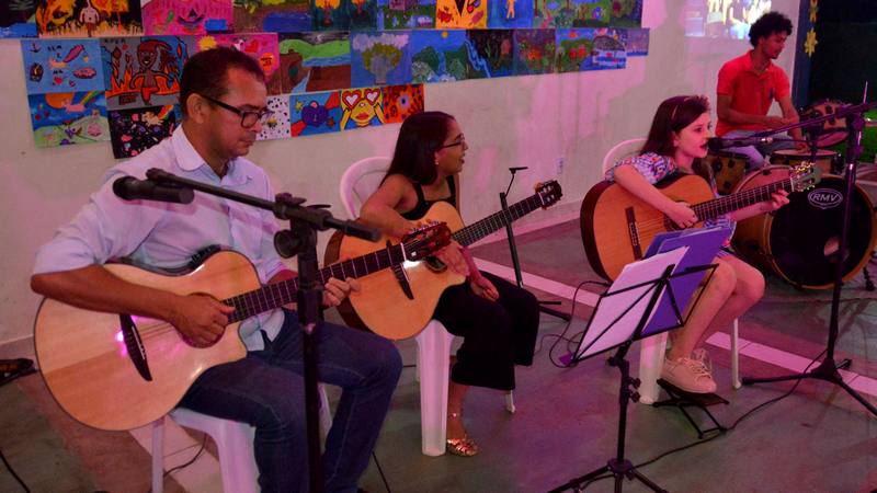 Já a Maria Eduarda Lopes dos Reis, 11 anos, era só felicidade, após sua apresentação musical, ao lado da colega Beatriz de Oliveira, 10 anos. “Tem um ano que eu faço violão. Tocar me deixa muito feliz, já aprendi muito, sou até convidada para tocar nas festa de amigos”, disse Maria Eduarda. E Beatriz, há seis meses no curso contou que também já está fazendo suas primeiras apresentações.