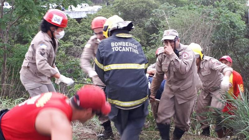| Caminhonete despencou de ponte em Palmas — Foto: Manuela Messias/TV Anhanguera |