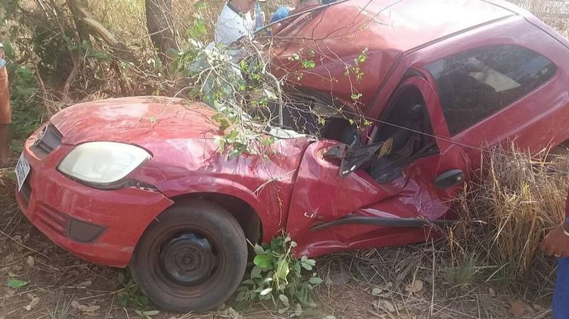 | Carro capotou e bateu em árvore ©Jairo Santos/TV Anhanguera |
