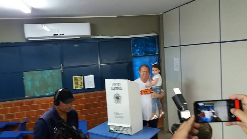 César Simoni (PSL) foi o terceiro candidato ao governo a registrar o voto. Ele chegou ao Colégio Marista, em Palmas, acompanhado da família.