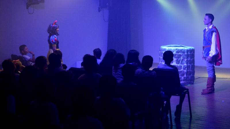 Antes de conhecer a sala de teatro, as crianças participaram de uma roda onde elas contaram suas próprias versões das histórias clássicas: Rapunzel, Branca de Neve ou a história do Macaquinho, com incentivo do projeto Conecta Biblioteca, programa nacional de estímulo à transformação social por meio de bibliotecas públicas. Aberta à comunidade, a biblioteca fica disponível a partir das 8 horas.