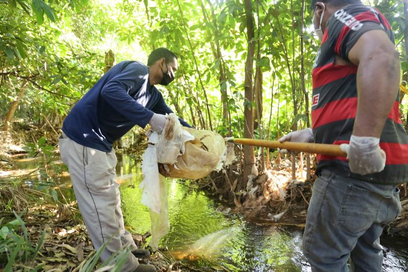 Na manhã desta sábado (19), uma equipe da Agência Gurupiense de Desenvolvimento (AGD), que cuida do Viveiro Municipal, realizou um mutirão para retirada de lixo nas margens do trecho do córrego Dois Irmãos que passa pelo terreno do viveiro, no bairro Trevo Oeste, em Gurupi.