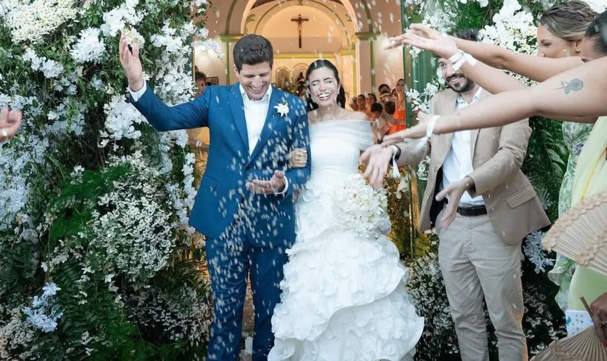 A celebração ocorreu na Capela de São Benedito, tradicional ponto turístico do litoral pernambucano. Após o casamento, o casal compartilhou nas redes sociais uma imagem na saída da igreja. “Com a bênção de Deus e abraçados pelo amor de nossas famílias e amigos, damos hoje o primeiro passo na construção da nossa família. Viva o amor!”, escreveram.