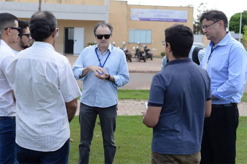 | Coordenador da Caeng, engenheiro Flávio Brito, conversa com alunos do IFTO após fiscalização |