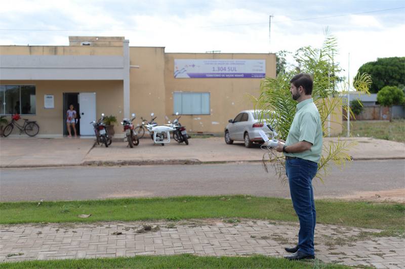 | Professor doutor Moacyr Neto comanda o drone durante fiscalização |