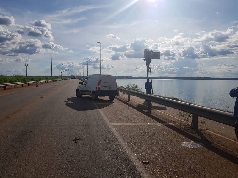 Na manhã desta quinta-feira, 6, a AEM fez a Verificação Anual Periódica de um dos radares fixos da Ponte Fernando Henrique Cardoso, em Palmas, isolando o trânsito por 10 minutos. Para o funcionamento, os radares devem ter seu modelo aprovado pelo Instituto Nacional de Metrologia, Qualidade e Tecnologia (Inmetro), atendendo à legislação metrológica em vigor e aos requisitos estabelecidos na resolução do Contran. No caso da Ponte FHC, o limite máximo de velocidade é de 70 km por hora.
