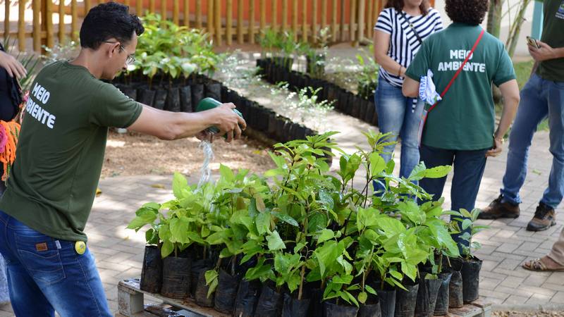 Mais de 200 mudas como tamarindo, goiaba vermelha, buriti, caju, amora, cupuaçu e jasmim foram levadas para a Escola Municipal Crispim Pereira Alencar para serem doados a comunidade.
