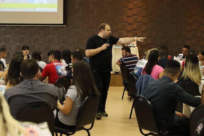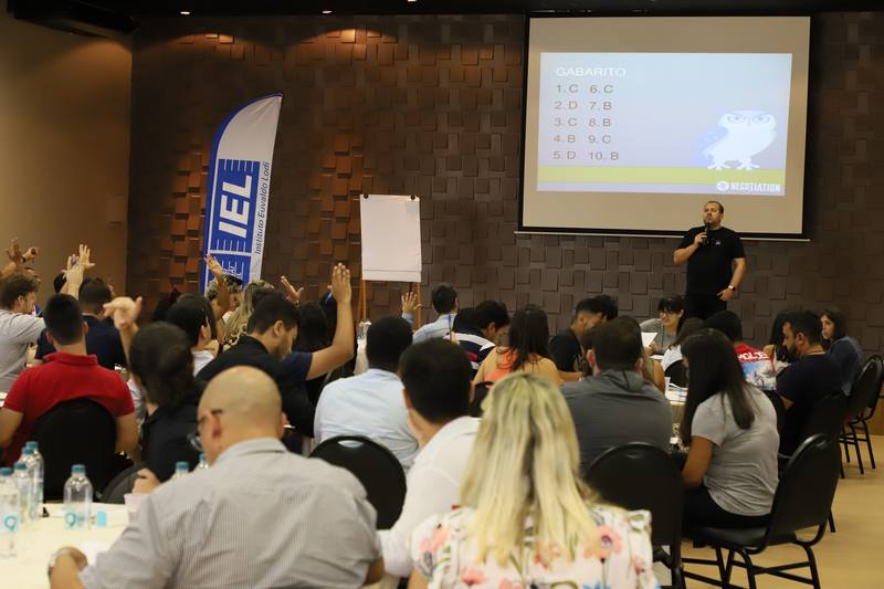 Centro e trinta e cinco participantes lotaram o curso Quebre a Banca - Negotiation trazido pelo Instituto Euvaldo Lodi (IEL) no último sábado, 04/05, em Palmas para empresas em busca de capacitação com foco em negociação, vendas e fechamento. Ministrada pelo especialista em vendas e mestre em negociação pela FBV/Dervy, professor Fabrício Medeiros, a capacitação reuniu 41 empresas em mesas redondas que possibilitaram a realização de discussões, dinâmicas e muita atividade prática.
