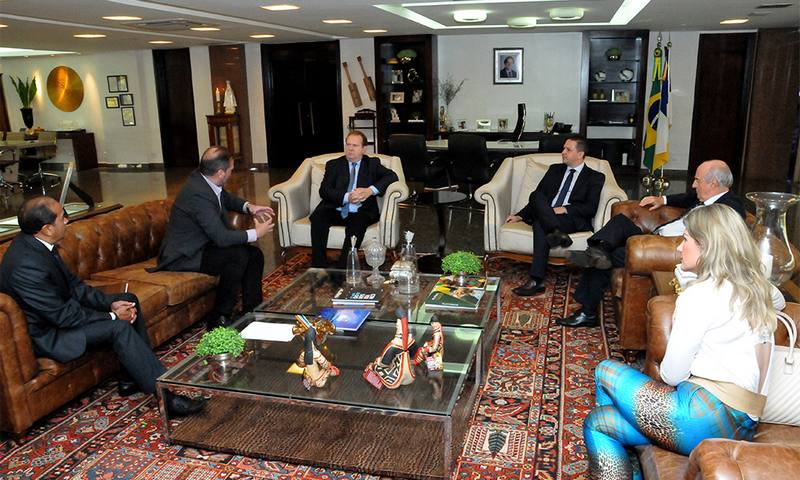 | Participaram da reunião, o presidente do Porto de Praia Norte, Klaus Weyand (sentado à direita do Governador); a diretora executiva do Porto de Praia Norte, Sandra Kramer; o empresário da ramo de transportes, Kahuê De Favre (sentado na poltrona à esquerda do governador); o secretário de Indústria e Comércio, Ridoval Chiareloto, e o assessor da Governadoria, José Arimatéia ©Washington Luiz |