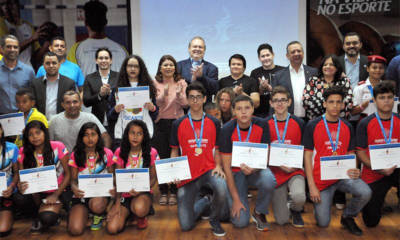 Durante a solenidade foram homenageados 64 alunos de todo o Estado que foram medalhistas nos Jogos da Juventude 2018, bem como, na Paralimpíadas Escolares. Também receberam menções a equipe de Futsal do Centro de Ensino Médio Indígena Xerente (Cemix), campeões dos Jets, que representou o Tocantins nos Jogos da Juventude.