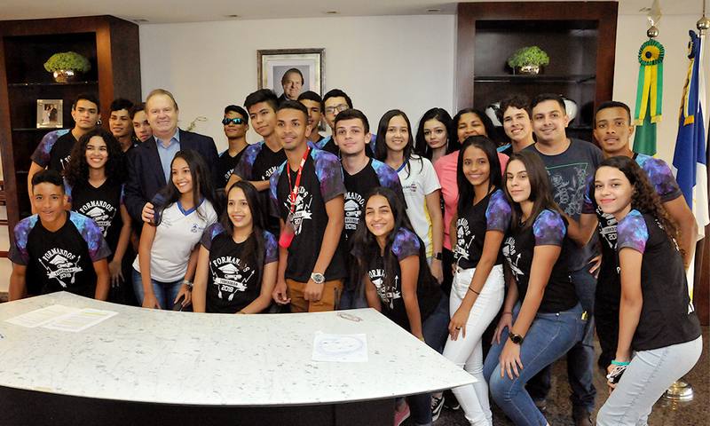 | Após a solenidade os estudantes foram recebidos pelo governador Mauro Carlesse em seu gabinete |