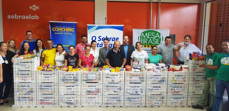 O Sebrae Tocantins, em parceria com a Associação Comercial e Industrial de Palmas (Acipa) e a Formação em Coaching Integral Sistêmico de Palmas (Febracis), entregou alimentos ao Programa Mesa Brasil Sesc nesta segunda-feira, 01, na sala Sebraelab. Mais de uma tonelada de alimentos serão doadas a nove entidades beneficentes cadastradas no programa. Todos os itens foram arrecadados em cursos e palestras ministrados pelo Sebrae, Febracis e Acipa, com a participação de mais de 600 empresários tocantinenses.