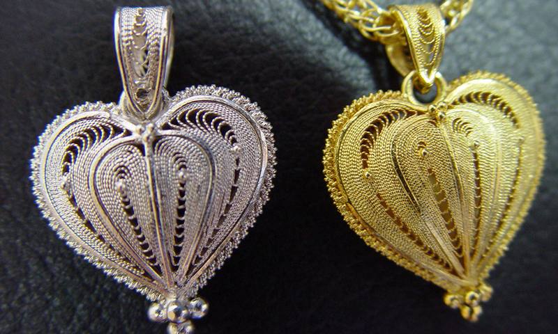 As famosas filigranas de Natividade são criadas por meio de um trabalho ornamental feito de fios de ouro finíssimos e pequeninas bolas, soldadas de forma a compor um desenho.