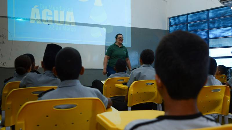 Os alunos do Colégio da Polícia Militar do Estado do Tocantins, localizado na Arse 61, participaram na tarde desta sexta-feira, 15, de uma palestra com o tema Sistema de Abastecimento de Água: economia da água e reúso, com a gerente de Monitoramento Ambiental da Fundação de Meio Ambiente (FMA), Bruna Almeida. A ação marca o início dos trabalhos que serão realizados por conta da Semana da Água, que acontece de 20 a 22 de março, no Parque dos Povos Indígenas com várias escolas da rede municipal de ensino.