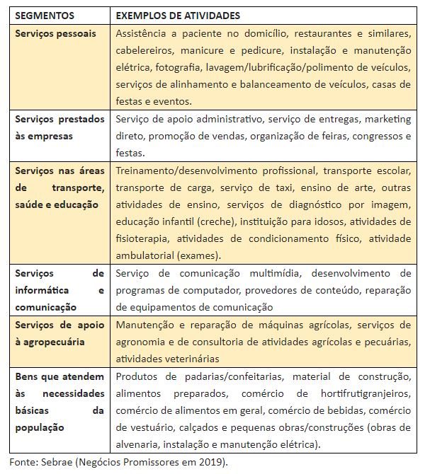 Exemplos de atividades com potencial de expansão em 2019: