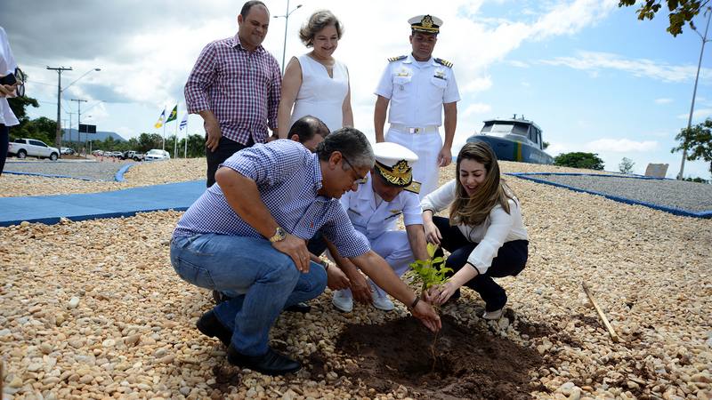 Em solenidade realizada na manhã desta segunda-feira, 28, a prefeita de Palmas, Cínthia Ribeiro, inaugurou um monumento em homenagem à Marinha do Brasil e integrantes da Capitania Fluvial do Araguaia-Tocantins (CFAT), instituição encarregada da defesa de rios e mares. Na ocasião, a prefeita recebeu a imposição da medalha Amigo da Marinha e realizou o plantio de espécies nativas do cerrado oriundas do projeto Meu Pé de Sombra, desenvolvido pela gestão municipal.