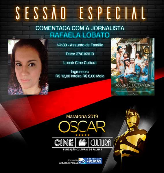 A corrida pelo Oscar 2019 já iniciou e a Fundação Cultural de Palmas preparou as Sessões Especiais Comentadas. Neste domingo, 27, às 14h30, a Sessão Especial do Cine Cultura terá a participação e comentários da jornalista Rafaela Lobato sobre o filme Assunto de Família, do Diretor e Roteirista Hirokazu Koreeda, Palma de Ouro do Festival de Cannes 2018 e indicado ao Oscar de Melhor Filme Estrangeiro.
