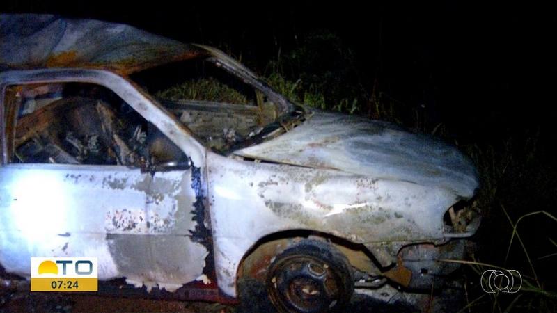 Carro pega fogo após batida na TO-020 e acidente deixa três mortos