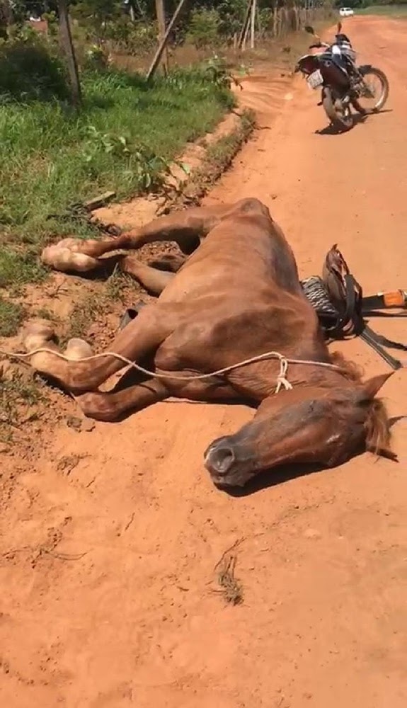 Moradores encontraram, neste domingo (16), um cavalo em situação de abandono em uma estrada vicinal na região sul de Palmas. O animal foi visto caído no chão e amarrado pelas patas e pescoço em uma cerca. O animal foi resgatado por moradores. (Veja o vídeo)