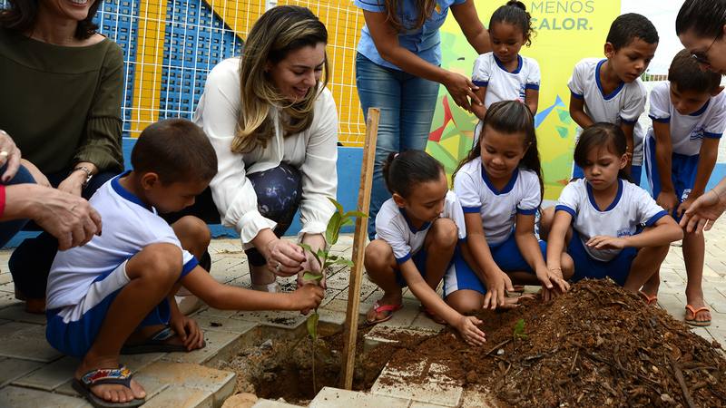 A primeira unidade a ser beneficiada com a arborização foi o Centro Municipal de Educação Infantil (Cmei) Paraíso Infantil, localizado no setor Bela Vista. No Cmei foram plantadas 12 mudas de árvores entre frondosas e frutíferas, de pequeno, médio e grande porte, definidas conforme análise do espaço disponível.