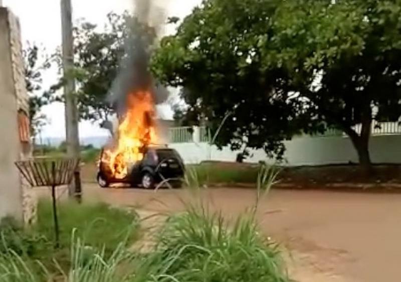Mulher filma o próprio carro pegando fogo e lamenta: 'Nosso único bem'