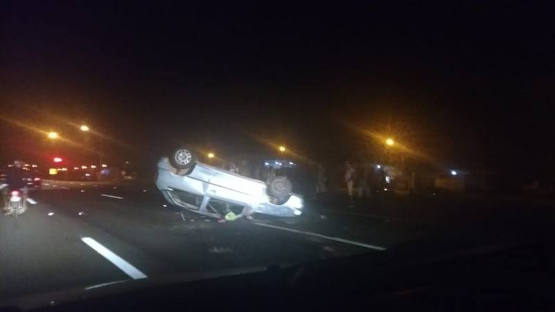 Carro fica atravessado na pista após capotar na TO-050 em Palmas