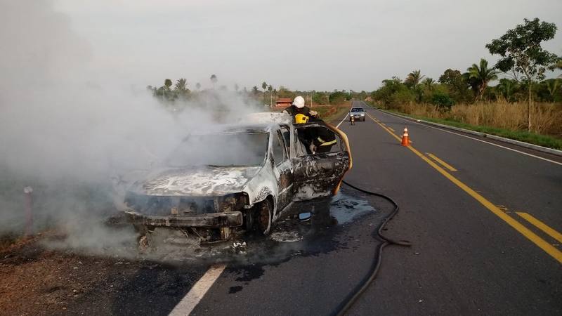 Homem retira bebê de cadeirinha momentos antes de carro pegar fogo